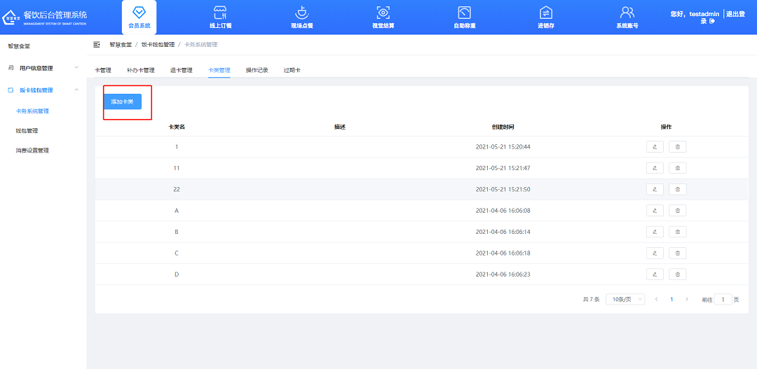 ①點擊“添加卡類”按鈕,系統彈出添加卡類型頁面;