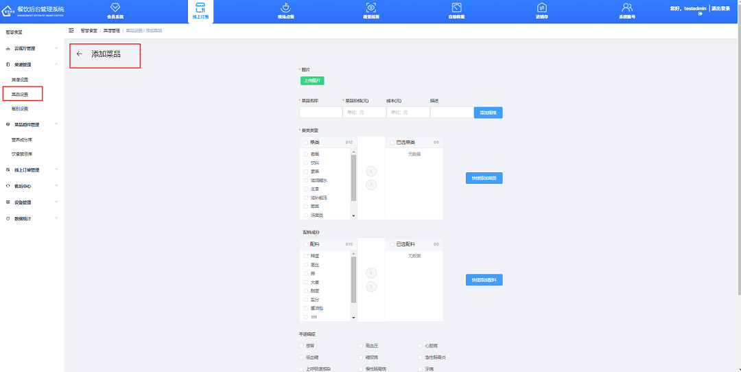 ④勾選不宜進食此菜品的特殊病癥(用于醫院),若無此需求可不勾選;