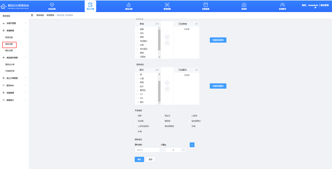 ③選擇菜品所屬的分類,選擇菜品搭配的配料;