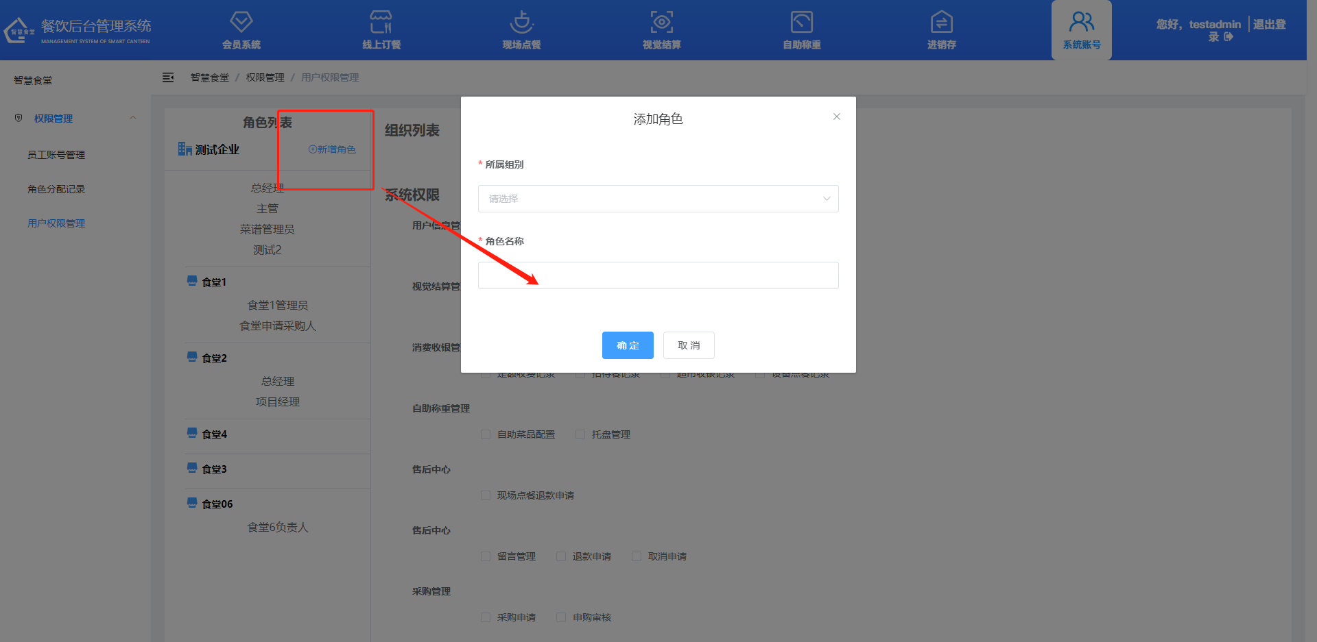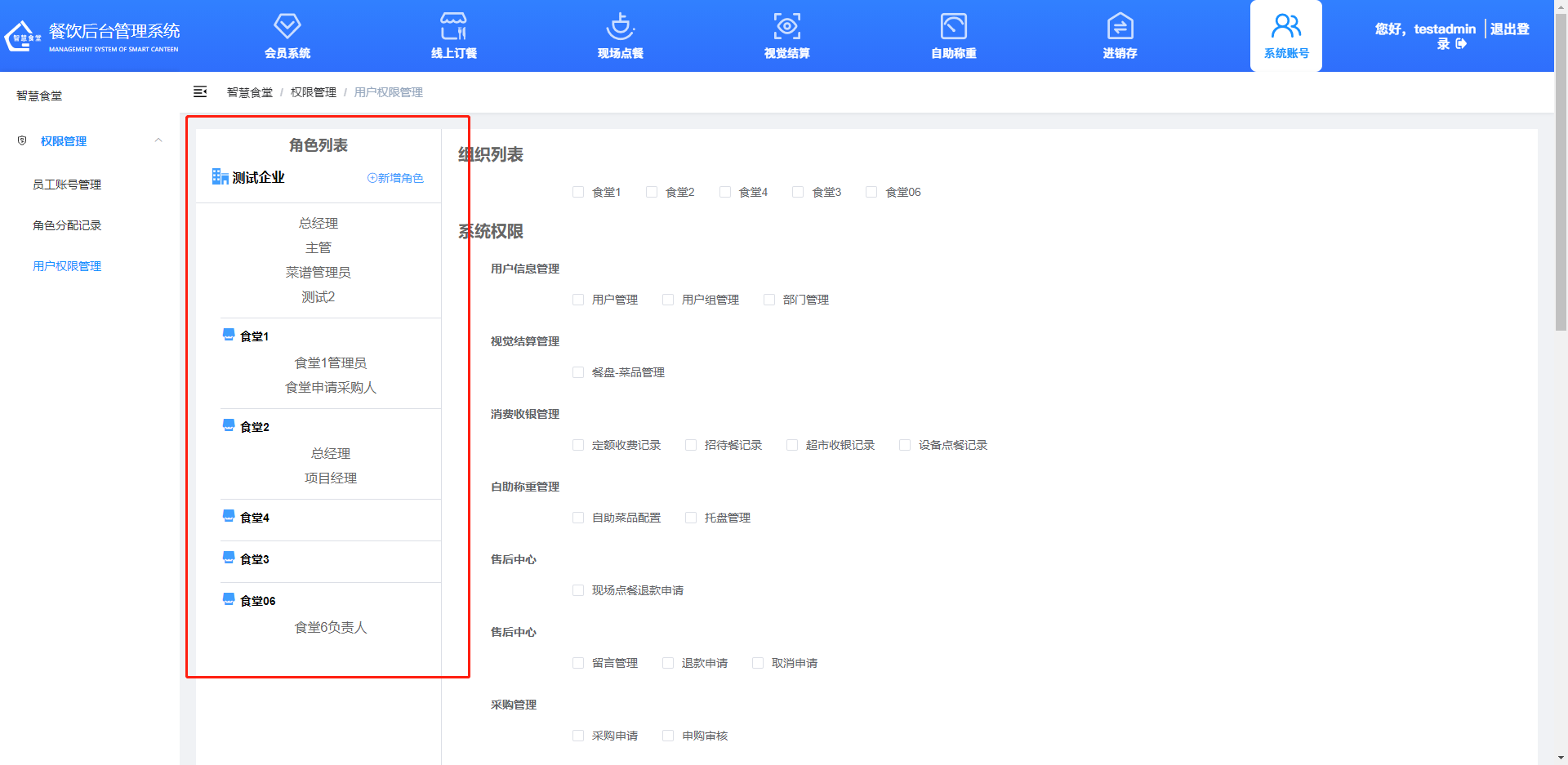 ①按需勾選“組織列表”中的食堂,擁有哪個(gè)食堂的權(quán)限則角色就可以查看和管理食堂相關(guān)模塊。