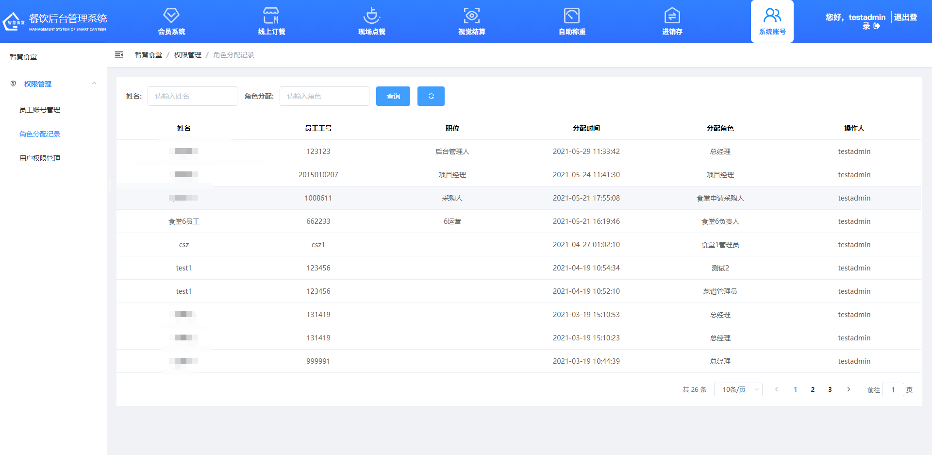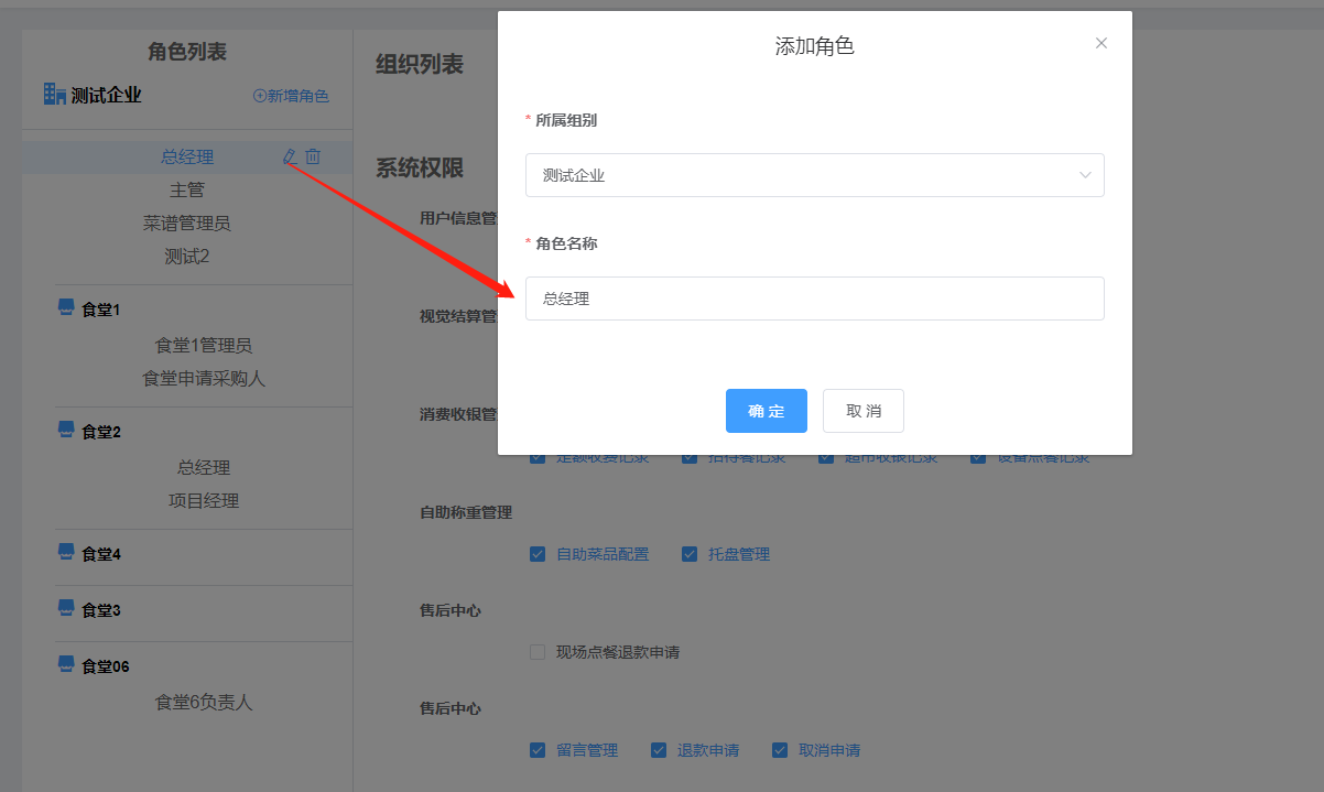 列表按不同食堂顯示角色名稱(chēng),點(diǎn)擊任意一個(gè)名稱(chēng),可對(duì)角色權(quán)限進(jìn)行修改。